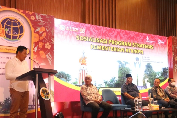 Fakta Daerah – Wakil Bupati Sidoarjo H. Subandi SH membuka secara resmi kegiatan Sosialisasi Program Strategis Kementerian ATR/BPN di Hotel Aston Sidoarjo, Sabtu (02/07/2022).