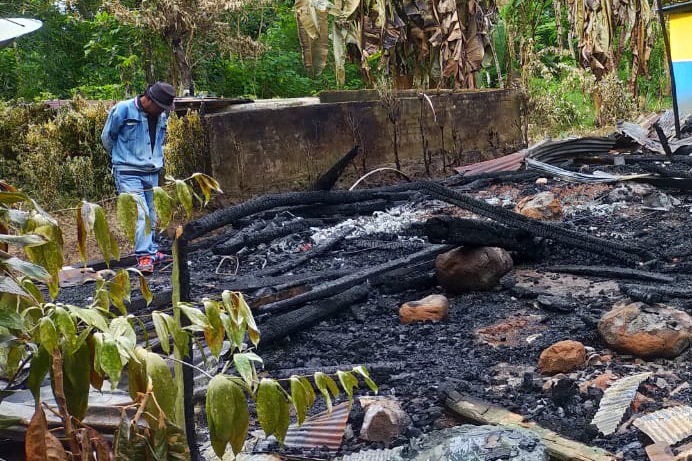 Satu orang terluka karena tertimpa atap seng, korban Arsi (70) yang ditemui media ini mengatakan, rumah terbakar akibat dari aliran listrik.