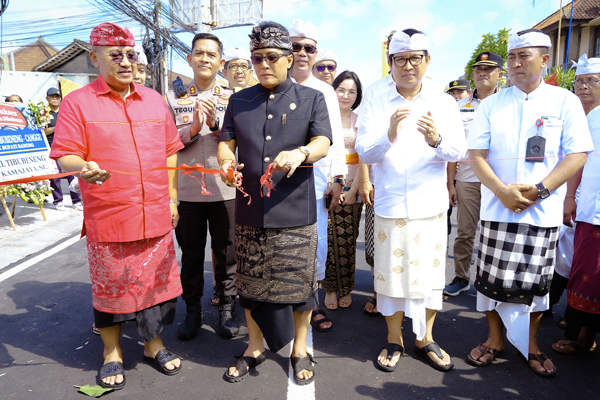 FAKTA – Mengurai kemacetan lalu lintas yang kerap terjadi di kawasan pariwisata Kuta Utara, Rabu (10/1/2024), Bupati Badung Nyoman Giri Prasta meresmikan jalan shortcut Canggu Tibubeneng yang berlokasi di simpang Padonan. Jalan ini memiliki panjang 335 meter, lebar 8 meter, dilengkapi dengan pedestrian yang dibangun diatas tanah seluas 26 are. Menggunakan anggaran dana APBD perubahan 2023 sebesar Rp6,2 miliar untuk proyek jalan dan Rp25 miliar untuk pembebasan lahan, dengan waktu pengerjaan kurang lebih dua bulan.