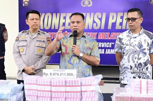 FAKTA – Direktorat Reserse Kriminal Khusus (Ditreskrimsus) Polda Jambi menggelar konferensi pers ungkap kasus tindak pidana korupsi pada Jumat, (11/04/2025) di Gedung B Polda Jambi.