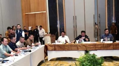 FAKTA – Ketua DPRD Provinsi Sumatera Selatan (Sumsel) Andie Dinialdie, SE, MM, menghadiri Rapat Tindak Lanjut Penyelesaian Pembangunan Jembatan P6, Kecamatan Lalan, Kabupaten Musi Banyuasin (Muba), di Hotel Santika Bandara Premiere Palembang, Kamis (23/10/2025). Rapat dihadiri Gubernur Sumsel Herman Deru dan Bupati Muba M Toha Tohet, serta unsur Forkopimda.