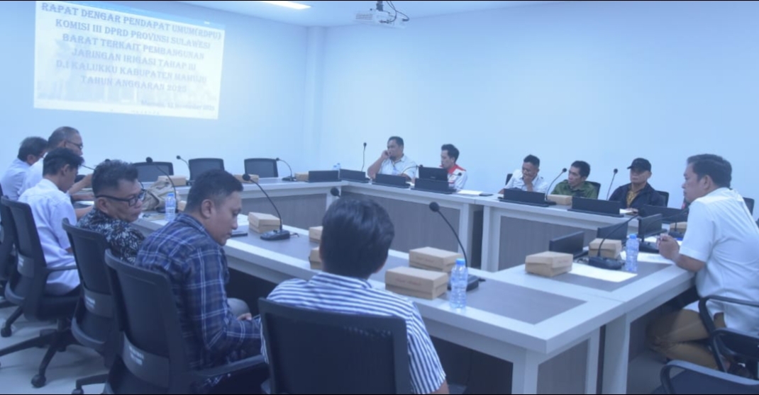 Rapat yang berlangsung pada 11 November 2025, di ruang Komisi III DPRD Sulbar ini dipimpin oleh Wakil Ketua Komisi III Fredy Boy dan dihadiri oleh perwakilan Balai Wilayah Sungai (BWS), pihak kontraktor pelaksana PT Rafa, serta perwakilan dari Dewan Pimpinan Daerah Gerakan Masyarakat Perangi Korupsi (DPD GMPK).