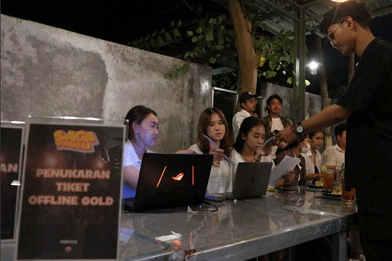 “Kami mengingatkan kepada masyarakat yang ingin membeli tiket, agar lebih berhati-hati, jangan membeli di tempat yang tidak resmi. Diharapkan untuk membeli tiket di akun resmi Sagaphoria. Selain di akun resmi Sagaphoria, hari ini (Selasa-red), penjualan tiket ada di Enigma Garden. Dan nanti di venue juga ada tiket on the spot. Nanti kita cek dulu, kalau masih ada, akan dibuka on the spot,” ucapnya.