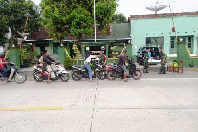 Selain di jalan, para babinsa juga membagikan nasi kotak kepada warga di sekitar pangkalan. (dun)