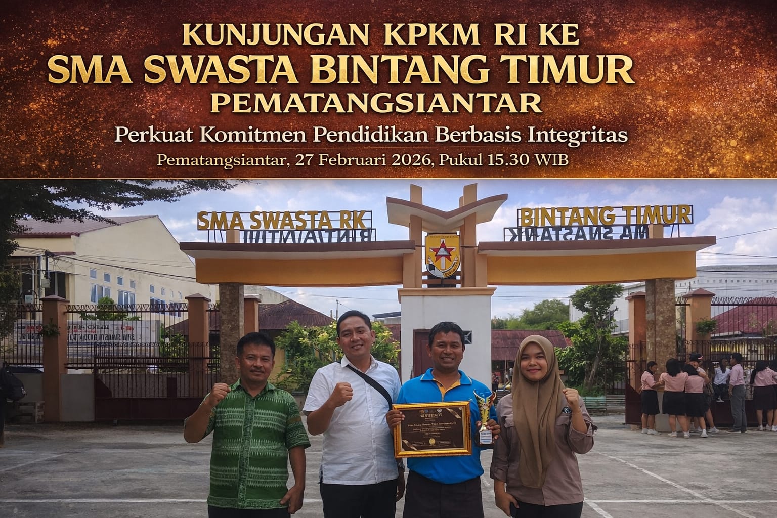 FAKTA – Jajaran Kongres Pemberantasan Korupsi Manipulatif Rakyat Indonesia (KPKM RI) melakukan kunjungan resmi ke SMA Swasta Bintang Timur Pematangsiantar pada pukul 15.30 WIB sebagai tindak lanjut atas penghargaan Satuan Pendidikan Berbasis Integritas & Tata Kelola Bersih yang diraih sekolah tersebut pada ajang KPKM RI Award 2026 tingkat Cabdisdik Wilayah VI.