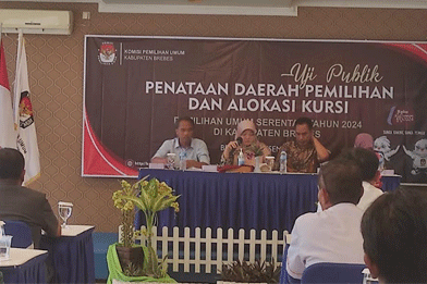 Hal tersebut disampaikan Ketua KPU Muamar Riza Pahlevi saat Uji Publik Penataan Daerah Pemilihan dan Alokasi Kursi Pemilu Serentak 2024 di Kabupaten Brebes, di Hotel Anggraeni, Jatibarang, Brebes, Rabu (14/12).