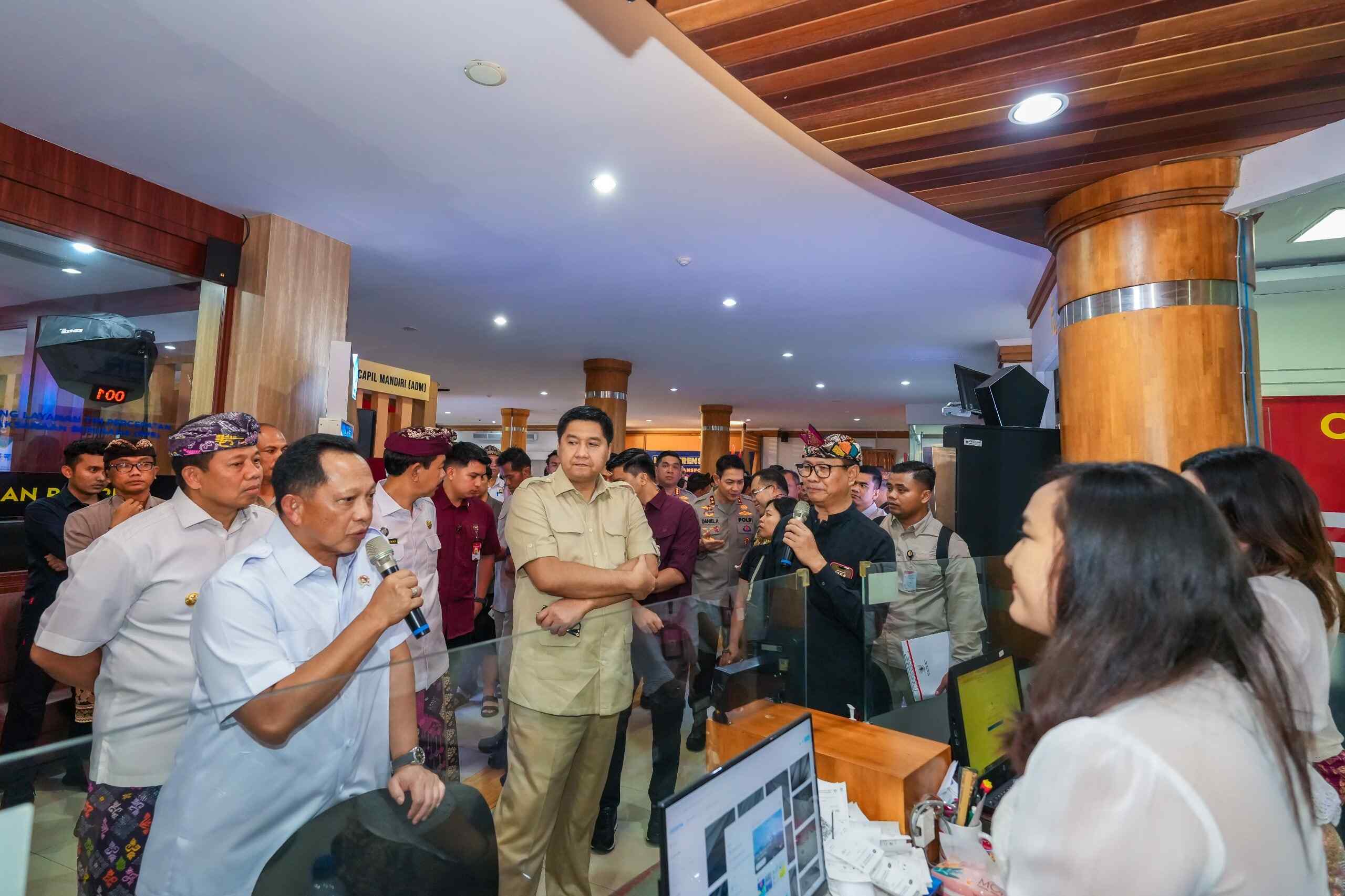 FAKTA – Menteri Dalam Negeri Tito Karnavian dan Menteri Perumahan dan Kawasan Permukiman (PKP) Maruarar Sirait mengunjungi Mall Pelayanan Publik (MPP) Kabupaten Badung termasuk Transformasi Layanan Persetujuan Bangunan Gedung (PBG) kepada Masyarakat Berpenghasilan Rendah (MBR) guna mendukung pembangunan 3 juta rumah di Kabupaten Badung, Kamis (23/1/2025). Kedua Menteri dari Kabinet Merah Putih tersebut diterima langsung oleh Wakil Bupati Badung I Ketut Suiasa didampingi Pj. Sekda Badung Ida Bagus Surya Suamba, Kepala Dinas Penanaman Modal dan Pelayanan Terpadu Satu Pintu (DPMPTSP) Made Agus Aryawan dan Kepala OPD di lingkup Pemkab Badung.