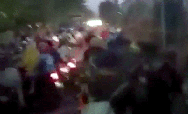 Pengendara sempat merusak pagar pembatas. Mereka mencoba mencari jalur alternatif. Petugas lantas datang menghalau. Pengendara yang marah lantas melempar beberapa batu hingga kursi kepada petugas kesehatan.