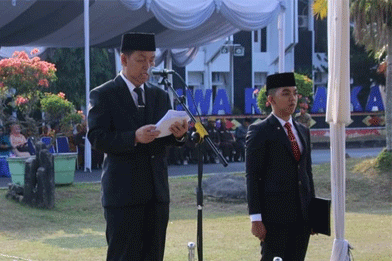 Upacara yang dihadiri oleh masing-masing pimpinan forkopimda dan perwakilan dinas instansi terkait itu berlangsung di halaman Pemda Lampung Utara pada, Senin 14 Agustus 2023.