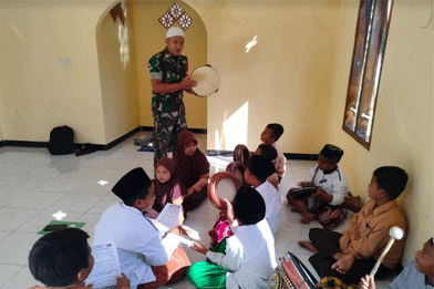 Seperti yang dilakukan oleh Babinsa Koramil 0812/07 Bluluk Serda Avif yang memberikan pelatihan Hadrah dan materi Wawasan Kebangsaan kepada siswa siswi SDN 3 Songo,Kecamatan Bluluk, Sabtu (29/07/2023).
