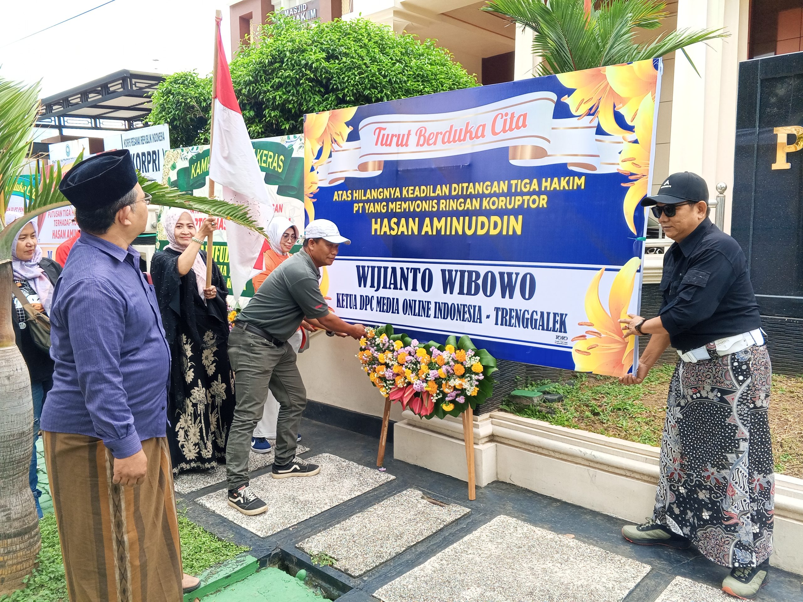 DPW LIRA Jatim memasang puluhan karangan bunga di depan Pengadilan Tinggi Surabaya. Foto(50N1)