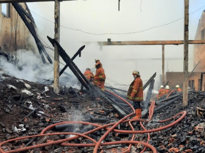 Setelah dilakukan pengecekan untuk sebagian gudang sudah dalam kondisi terbakar.