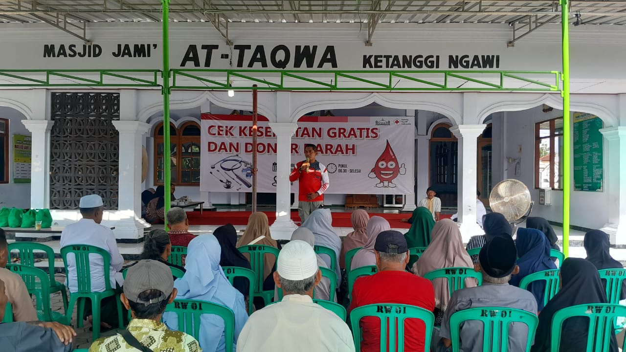 FAKTA – Masjid At-taqwa Ketanggi Ngawi Kecamatan Ngawi Kabupaten Ngawi, giat perdana mengadakan kegiatan cek kesehatan gratis sekitar 50 orang, dan donor darah sekitar 24 orang, Baznas Ngawi ikut peduli memberikan bingkisan sembako bagi yang hadir semua peserta, pada hari minggu mulai jam 07.00 WIB, sampai selesai dengan lancar dan kidmat, Minggu (23/11/2025).
