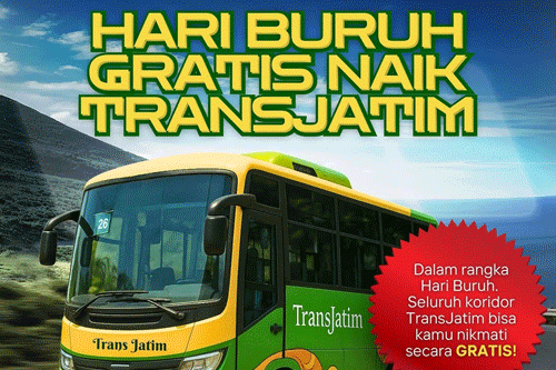 Kebijakan ini berlaku khusus tanggal 1 Mei 2025 dan mencakup semua rute Trans Jatim, kecuali layanan TransJatim Luxury.