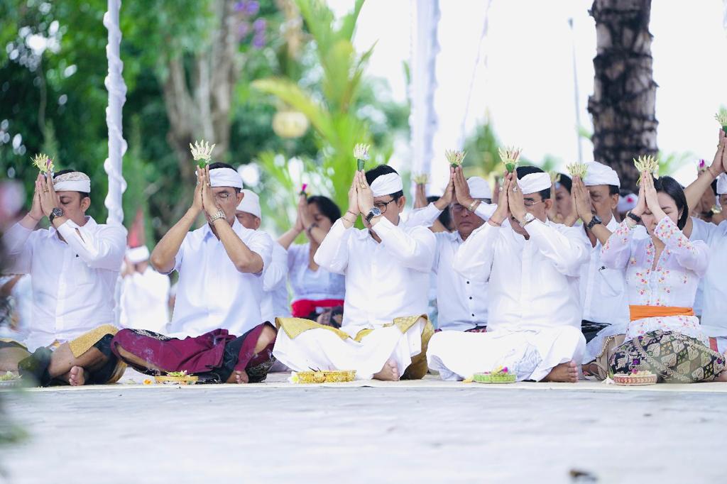 Sebelum melaksanakan persembahyangan bersama Sekda Adi Arnawa mendem pedagingan di pelinggih Padma yang ada di Kawasan Agro Techno Park. Turut hadir dalam kesempatan ini Staf Ahli Bidang Ekonomi, Keuangan dan Pembangunan I Gst Ayu Agung Trisna Dewi, Kepala Dinas Pertanian dan Pangan Kabupaten Badung I Wayan Wijana, Camat Petang A.A. Ngr Raka Sukaeling, turut hadir juga mantan Kepala Badan Penelitian dan Pengembangan I Wayan Suambara