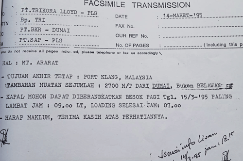 Namun, berdasarkan faksimile PT. Trikora Lloyd Palembang, kapal justru diarahkan menuju Dumai untuk menambah muatan 2.700 MT lagi.