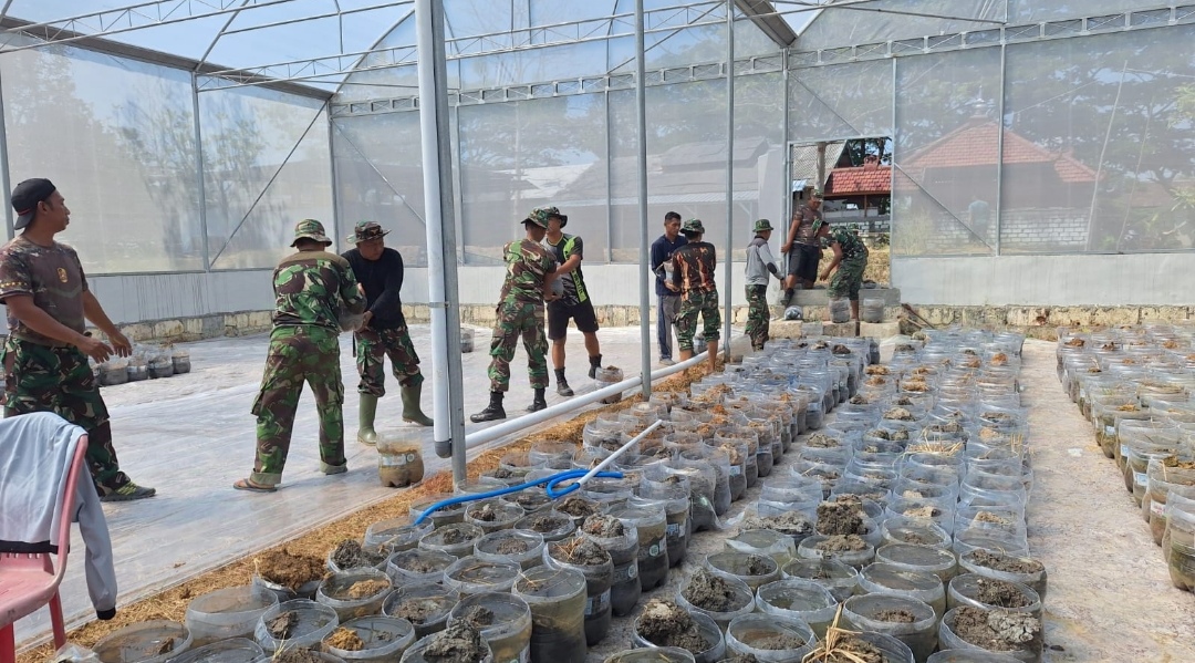 FAKTA – Satuan Tugas Pangan Terpadu atau Satgas Pandu Kodim 0812/Lamongan terus melakukan optimalisasi ketahanan pangan.Kali ini, pihak Satgas kampung pandu berupaya pengembangan Green House guna meningkatkan produktifitas ketahanan pangan Nasional dengan memanfaatkan limbah galon yang akan di gunakan sebagai pot tempat pembenihan tanaman padi yang berada di lokasi kampung pandu Desa Jotosanur Kecamatan Tikung Kabupaten Lamongan, Selasa (15/10/2024).