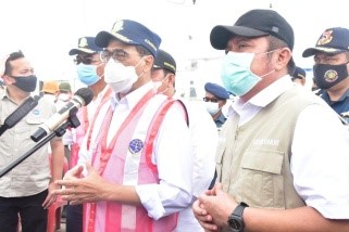 Ikut dalam rombongan Menhub kali ini, Deputi Bidang Koordinasi Investasi dan Pertambangan Kementerian Koordinator Bidang Kemaritiman dan Investasi, Seprian Hari Setio, Direktur Public Private Partnerships (PPP) Bappenas, Sri Bagus, Direktorat Jendral Perhubungan Laut, Agus Purnomo, Direktur Utama Penjaminan Infrastruktur Indonesia (PII), Wahid Sutopo, serta Direktur Utama Pelindo II, Arif Suhartono, serta sejumlah Kepala OPD terkait di lingkungan Pemprov Sumsel. (F.214)