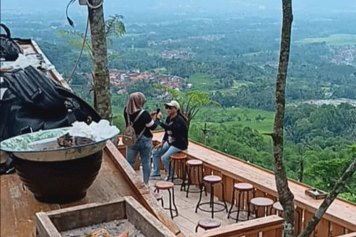 Pengunjung bisa menikmati secangkir kopi ataupun cemilan dari tempat ketinggian, sehingga terlihat jelas pemandangan Kota Tasikmalaya.