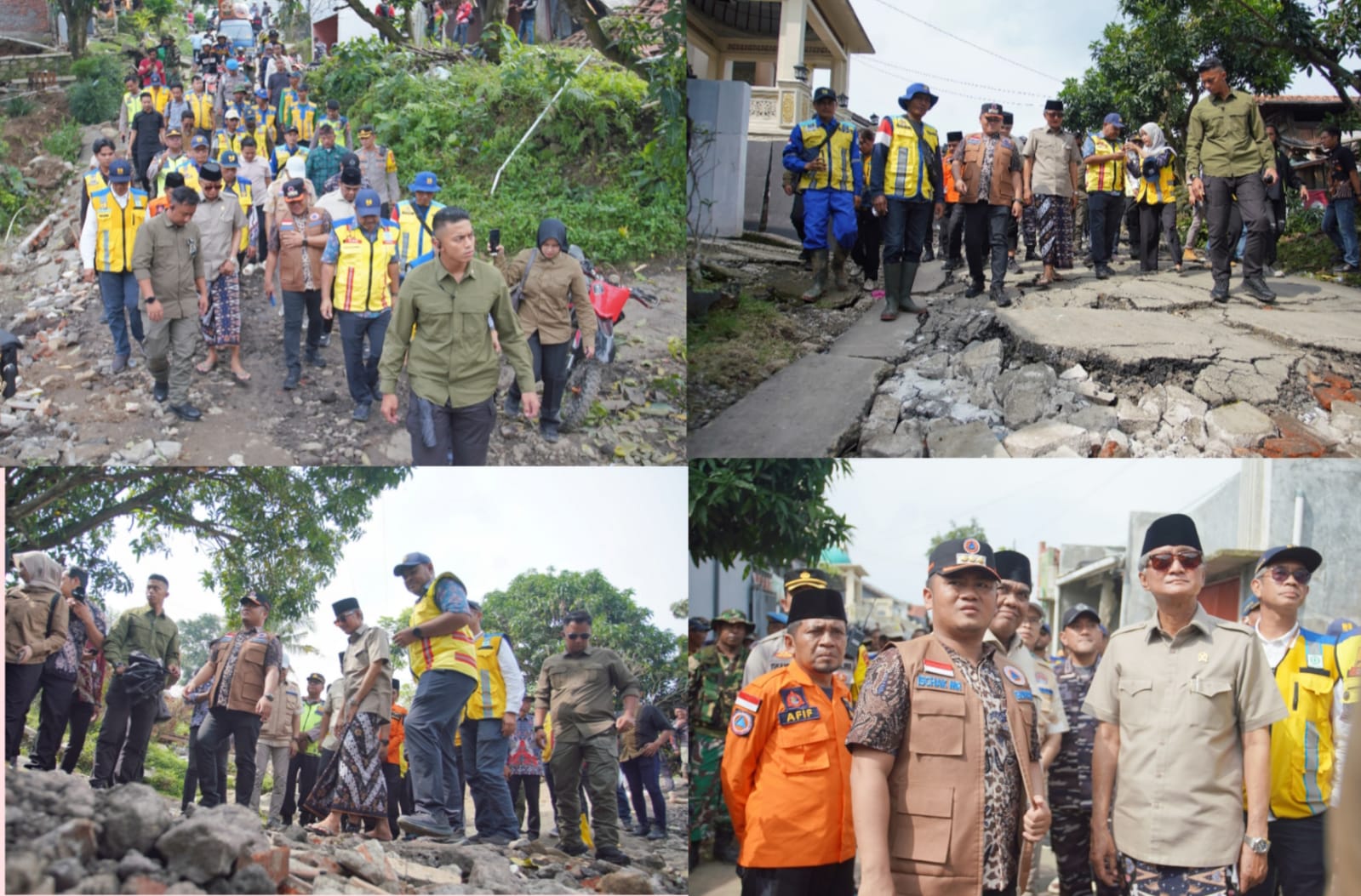 Dody Hanggodo, Menteri PU-PR saat datang ke lokasi bencana memastikan warga terdampak bencana tanah bergerak di Desa Padasari akan menempati hunian sementara (Huntara) sebelum Hari Raya Idulfitri.