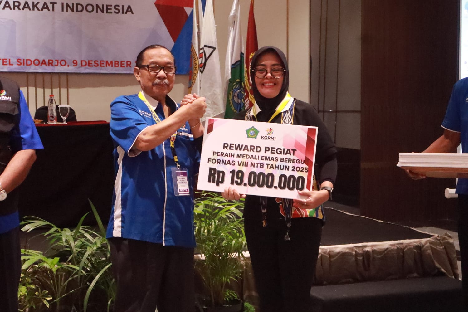 Dalam Muskab ini juga dilaksanakan penyerahan bonus pegiat/atlet pemenang FORDA II Jatim tahun 2024 dan FORNAS VIII NTB tahun 2025 dari Pemkab Sidoarjo dengan total seluruhnya Rp1.145.000.0000. Secara simbolis reward diserahkan kepada 20 perwakilan pegiat. (mad/rr)