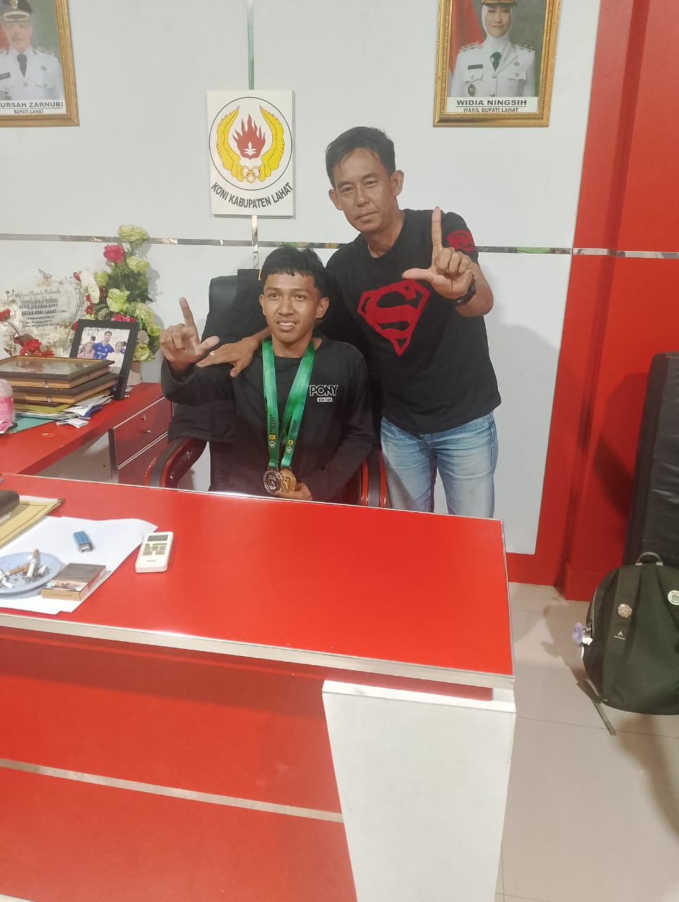 Ketua KONI Lahat Susiawan Rama memberikan apresiasi terhadap Muhammad Iqbal atas prestasinya dalam kejuaraan Karateka Piala Pangdam II Sriwijaya, kami bangga atas prestasi adik kami Muhammad Iqbal memperoleh medali 1 Emas dan 1 Perak disela sela acara pertemuan seluruh ketua Cabor di kantor KONI Lahat.