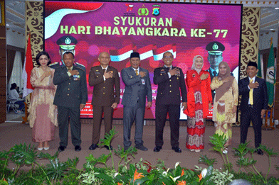 FAKTA – Upacara peringatan hari Bhayangkara ke-77 Tahun 2023 bertema “Polri Presisi Untuk Negeri Untuk Indonesia Maju” yang dilaksanakan di halaman Kantor Pemerintah Kabupaten (Pemkab) Barito Kuala (Batola) Provinsi Kalimantan Selatan, Sabtu (1/7/2023).
