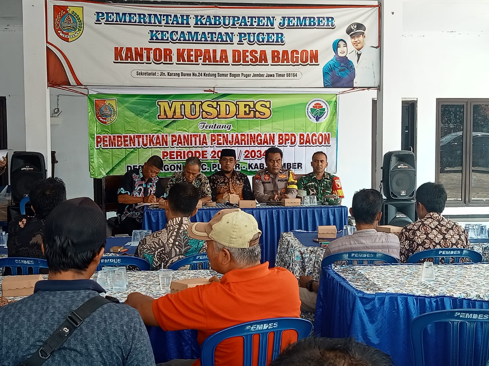 Kegiatan rapat yang digagas oleh pemerintah desa Bagon kecamatan Puger Jember dengan kegiatan pembentukan panitia penjaringan BPD desa Bagon untuk pembinaan dan pengawasan administrasi kepada pemerintah desa yang dilaksanakan di pendopo desa Bagon kecamatan Puger Jember.