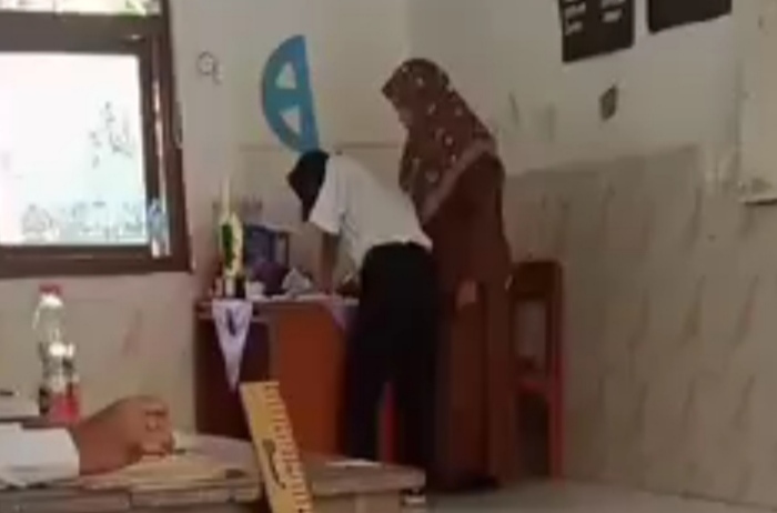 Saat terjadi kekerasan fisik di ruang kelas oleh guru bahasa Inggris kelas 8 SMPN 1 Kembangbahu.