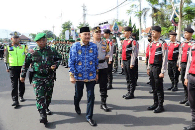 FAKTA – Bupati Purworejo RH Agus Bastian SE MM menjadi Inspektur Upacara dalam Apel Gelar Pasukan dalam rangka Operasi Ketupat Candi 2023 Polres Purworejo, Senin (17/4/2023). Turut mendampingi, Kapolres Purworejo AKBP Muhammad Purbaja dan Dandim 0708 Purworejo Letkol Inf Yohanes Heru Wibowo.