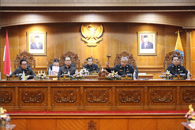 Sementara itu, Ketua DPRD Kabupaten Badung Putu Parwata memimpin Rapat Paripurna DPRD Kabupaten Badung yang didampingi Wakil Ketua I DPRD Badung Wayan Suyasa dan Wakil Ketua II DPRD Badung Made Sunarta.