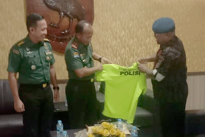 Dalam kesempatan ini, Ketua KBPPP PB sekaligus menyerahkan kaos berwarna hijau muda yang diterima langsung oleh Pangdam dengan bertuliskan “Bangga Menjadi Anak Polisi”.