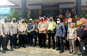 Kedatangan rombongan yang juga didampingi Forkopimda Kota Sukabumi disambut Pengurus Gereja HKBP Resort Sukabumi St. Sihotang dan Pengurus Organisasi Pemuda Batak Bersatu (PBB).
