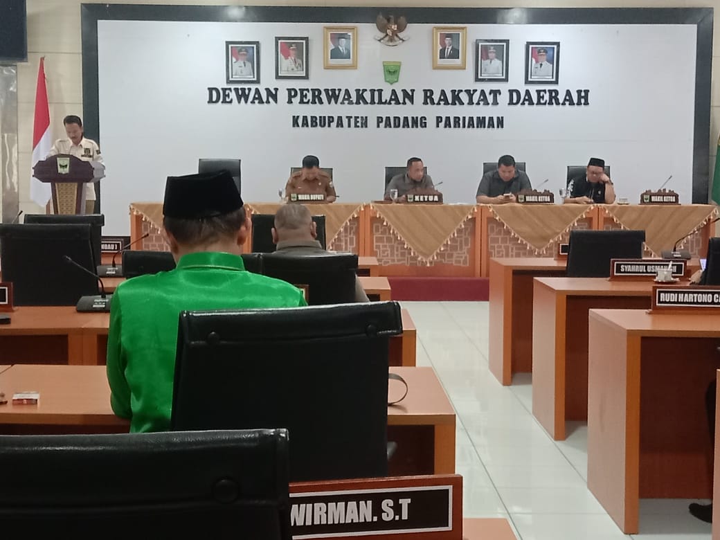 FAKTA – Dewan Perwakilan Rakyat Daerah (DPRD) Padang Pariaman, Sumatera Barat, bersama eksekutif menggelar Sidang Paripurna dalam rangka penyampaian jawaban eksekutif atas pandangan umum fraksi-fraksi tentang rancangan KUA-PPAS tahun 2026. Rapat Paripurna tersebut dibuka oleh Ketua DPRD, Aprinaldi didampingi oleh Wakil Ketua, Wirya dan Firman, Senin (29/9/2025).