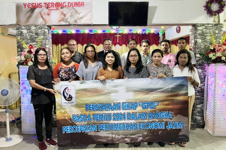 Aksi pernyataan sikap Kelompok Jemaat Gereja pasca Pemilu 2024, dalam rangka percepatan pertumbuhan ekonomi di Jawa Timur.