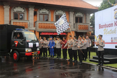 Dalam sambutannya Kapolda Bali menyampaikan bahwa bantuan kemanusiaan ini merupakan sumbangan dari beberapa donatur, dan juga menyampaikan untuk bantuan selanjutnya masih terbuka bagi semua pihak yang ingin berdonasi.