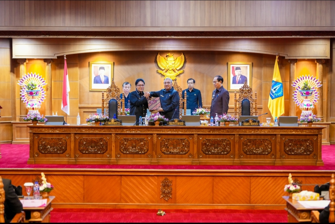FAKTA – Bupati Badung I Nyoman Giri Prasta menghadiri Rapat Paripurna DPRD Kabupaten Badung Masa Persidangan Kedua Tahun 2024 di Ruang Sidang Utama Kertha Gosana, Gedung DPRD Badung, Puspem Badung, Selasa (23/7/2024). Pada rapat kali ini mengagendakan penyampaian penjelasan Bupati Badung terhadap Rancangan Perubahan Kebijakan Umum APBD (KUA) dan Perubahan Prioritas dan Plafon Anggaran Sementara (PPAS) APBD Kabupaten Badung tahun anggaran 2024.