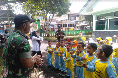 Pihaknya juga mengenalkan tentang apa itu TNI, tugas-tugasnya, apa itu Kodim dan Koramil, serta jenjang kepangkatan prajurit kepada anak usia dini tersebut.