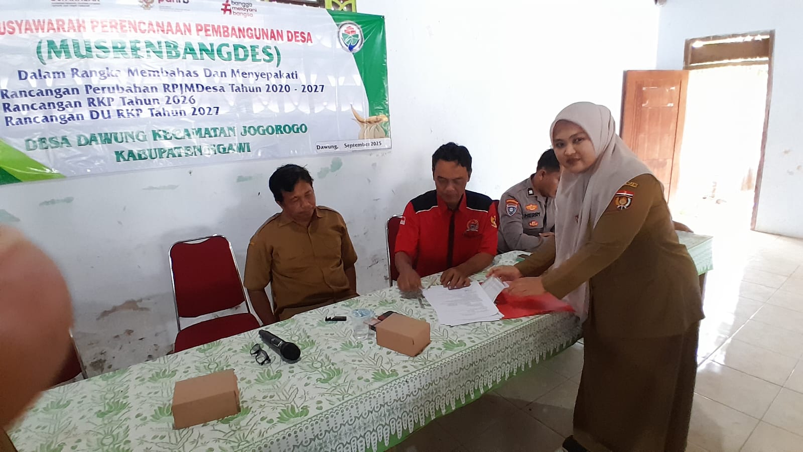 FAKTA – Pemerintah Desa Dawung Kecamatan Jogorogo Kabupaten Ngawi, Musrenbangdes, dalam rangka membahas dan menyepakati, rancangan membahas RPJMDES dan menyepakati, rancangan RKP tahun 2026, rancangan DU RKP Tahun 2027, dilaksanakan di Aula Kantor Desa Dawung, pada hari Senin (27/9/2025).