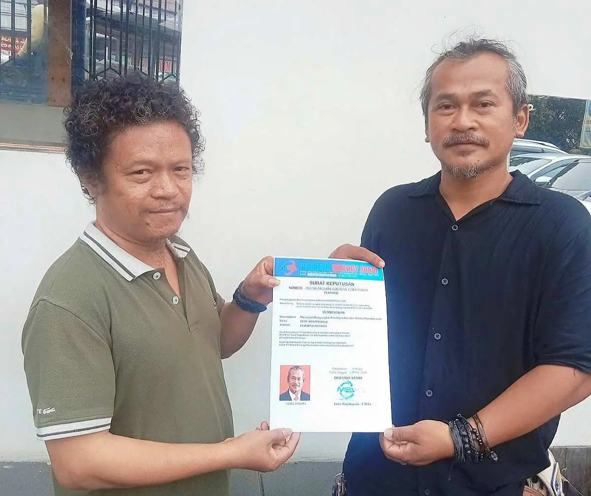 FAKTA – Pemimpin Perusahaan Media rilisberita.com Erris Napitupulu selaku Dirut PT Media Sinergy Abadi Menyerahkan SK Pengangkatan Pimpinan Redaksi (Pimred) Media Rilisberita.com Kepada Dede Hanafi (ibing). Penyerahan SK dilaksanakan bertempat di kediaman Dede Hanafi. Rabu (17/4/2025)“Dengan diangkatnya Dede Hanafi sebagai pemimpin redaksi diharapkan, dapat memajukan Media Online dan Cetak rilisberita.com ini kedepannya, dan bisa memberikan kontribusi yang positif bagi masyarakat dan bisa menjadi mitra Pemerintah di dalam memberitakan kinerja pemerintah didalam pembangunan nasional,” ungkap Dirut PT Media Sinergy Abadi.