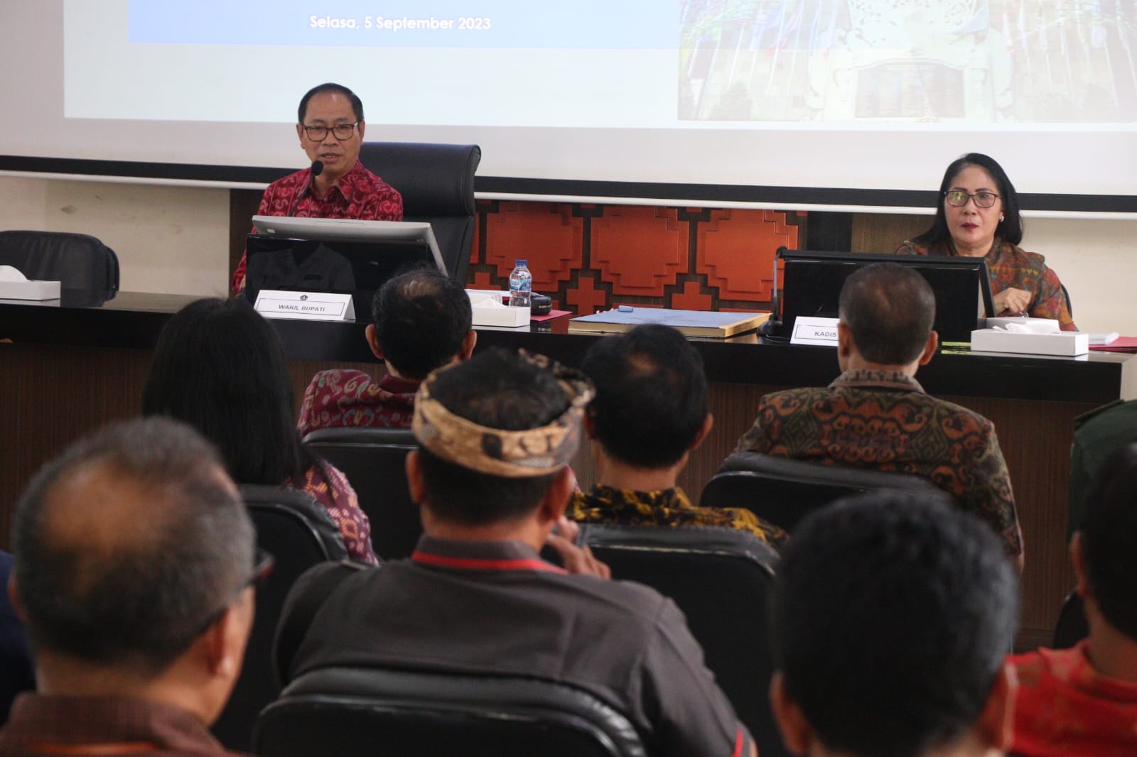 FAKTA – Wabup Ketut Suiasa menghadiri rapat koordinasi (Rakor) pendataan dan penelusuran Arsip Bom Bali I di Ruang Rapat Wakil Bupati Puspem Badung, Selasa (5/9/2023). Rakor bertujuan untuk Penanganan Penyelamatan Arsip Bom Bali I Menuju Arsip Memori Kolektif Bangsa.