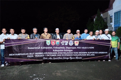 FAKTA – Pemerintah Kabupaten (Pemkab) Balangan bersama warga dan pecinta sepak bola menggelar doa bersama untuk korban tragedi Kanjuruhan Malang.