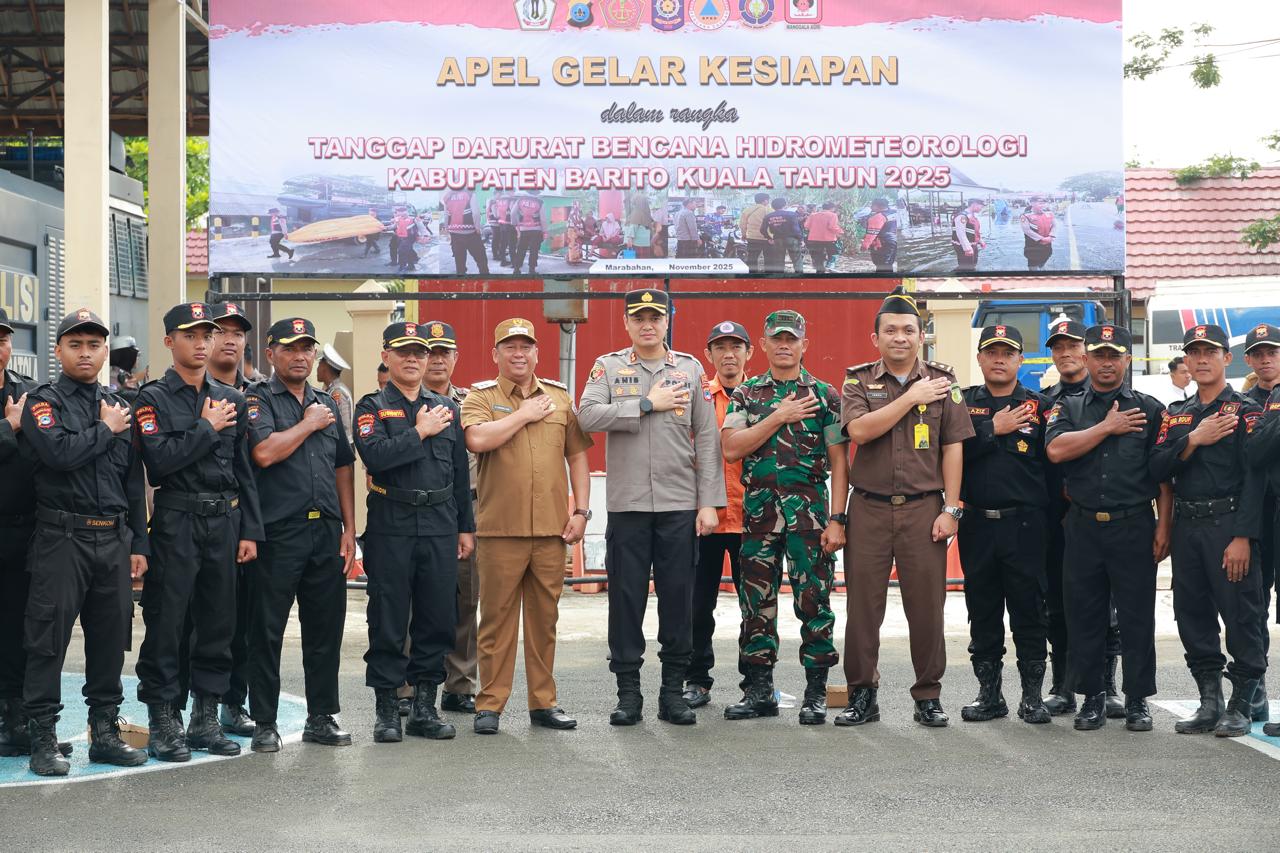Dalam kegiatan tersebut, Kapolres Barito Kuala AKBP Anib Bastian membacakan amanat Kapolda Kalimantan Selatan Irjen Pol Rosyanto Yudha Hermawan, S.I.K., S.H., M.H. yang menekankan pentingnya kesiapsiagaan seluruh elemen dalam menghadapi ancaman bencana hidrometeorologi yang setiap tahun berpotensi terjadi di Indonesia, khususnya di wilayah Kalimantan Selatan.