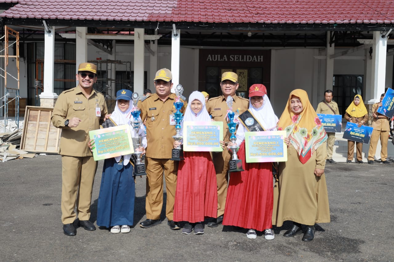 FAKTA – Upacara, Senin (18/11/2024) Pj. Bupati Barito Kuala Dinansyah menyerahkan penghargaan pemenang lomba Festival Tunas Bangsa Ibu Bahasa Banjar 2024. Tiga siswa dari Barito Kuala telah berhasil meraih prestasi membanggakan, yakni Juara Satu Menulis Puisi Bahasa Banjar tingkat SD, Juara Satu menulis cerita pendek Bahasa Banjar tingkat SD dan Juara Dua lomba Bakisah Bahasa Banjar tingkat SMP. Para juara tersebut akan mewakili Provinsi Kalimantan Selatan pada Festival Bahasa Banjar Tingkat Nasional pada tahun 2025 mendatang di Jakarta.