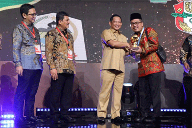 Penghargaan UHC diberikan langsung oleh Menteri Dalam Negeri (Mendagri) M Tito Karnavian kepada Sekda Brebes Ir Djoko Gunawan MT di Balai Sudirman Jakarta, Selasa (14/3/2023).