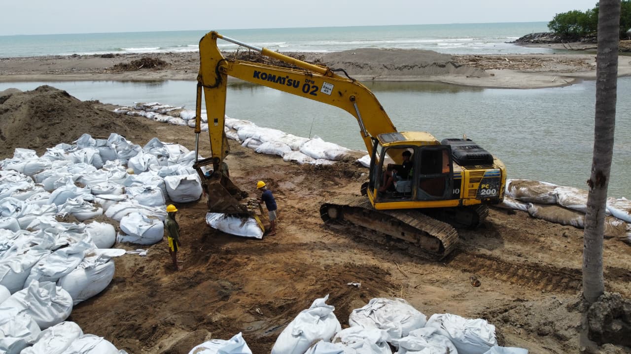 Upaya ini dilaksanakan melalui koordinasi dengan Balai Wilayah Sungai Sumatera V dengan mengerahkan dua unit alat berat ke lokasi. Pemasangan geobag difokuskan pada titik tebing kritis di sekitar muara guna mencegah longsor susulan, terutama saat debit air meningkat pada musim hujan.