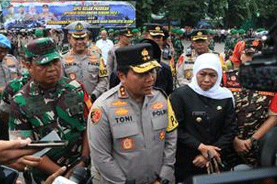 Apel gelar pasukan dipimpin langsung Gubernur Jatim, Khofifah Indar Parawansa, didampingi Kapolda Jatim Irjen Pol Toni Harmanto dan Pangdam V Brawijaya Mayor Jenderal TNI Farid Makruf, Kabinda Jatim, PJU Polda Jatim, PJU Kodam V Brawijaya, diikuti Forkopimda Sidoarjo, Bakesbangpol, Dishub, Satpol-PP, BPBD Provinsi dan Kabupaten.