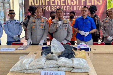 FAKTA – Tim Polres Aceh Utara, Provinsi Aceh menangkap dua pengedar narkotika yang ditaksir senilai Rp68 miliar. Barang bukti yang diamankan berupa 163.000 butir pil ekstasi dan 20 bungkus sabu-sabu dengan berat 21.400 gram.