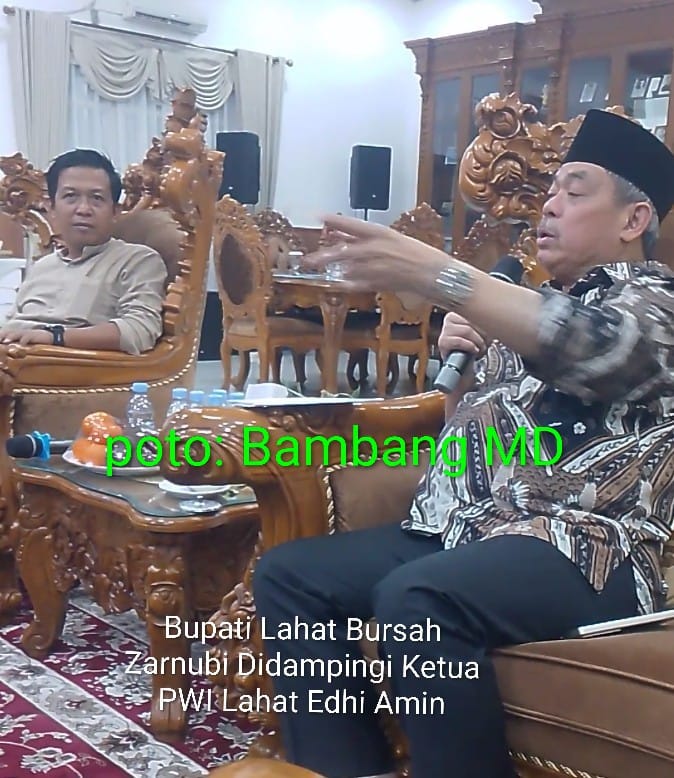 Bupati Lahat Bursah Zarnubi mengucapkan terimakasih atas pertemuan dan audensi rekan rekan media malam ini terutama saya mengucapkan kepada sdr, ketua PWI Lahat Edhi Amin selamat atas terpilih sebagai Ketua PWI Lahat Priode 2026 – 2029,