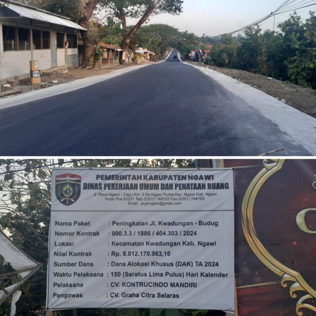 Peningkatan Jalan Kwadungan Desa Budug, Ngawi, Dikerjakan Selesai Sebelum Masa Kontrak Habis